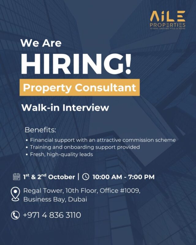 Aile Properties, a prestigious name in the Dubai real estate market, is hosting Aile Properties Walk in Interview to recruit dynamic professionals. This event is an excellent opportunity for individuals looking to grow their careers in a thriving real estate company 📢.