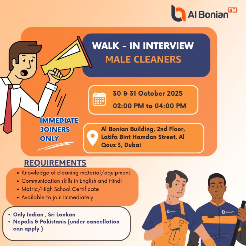 A leading facilities management company in the Dubai, is conducting a Al Bonian FM Walk in Interview. This presents an excellent opportunity for qualified candidates to join a dynamic team dedicated to excellence in facilities management π’.