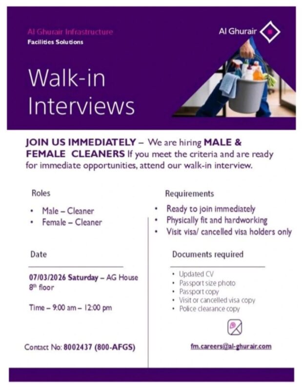 Al Ghurair Facilities Solutions Walk in Interviews in Dubai
