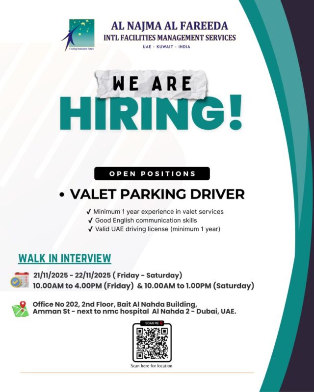 Al Najma Al Fareeda Walk in Interview in Dubai is an ideal opportunity for experienced professionals in the facilities management sector to advance their careers with a leading company. Candidates meeting the specified criteria are encouraged to attend the walk in interview and present their credentials for consideration.