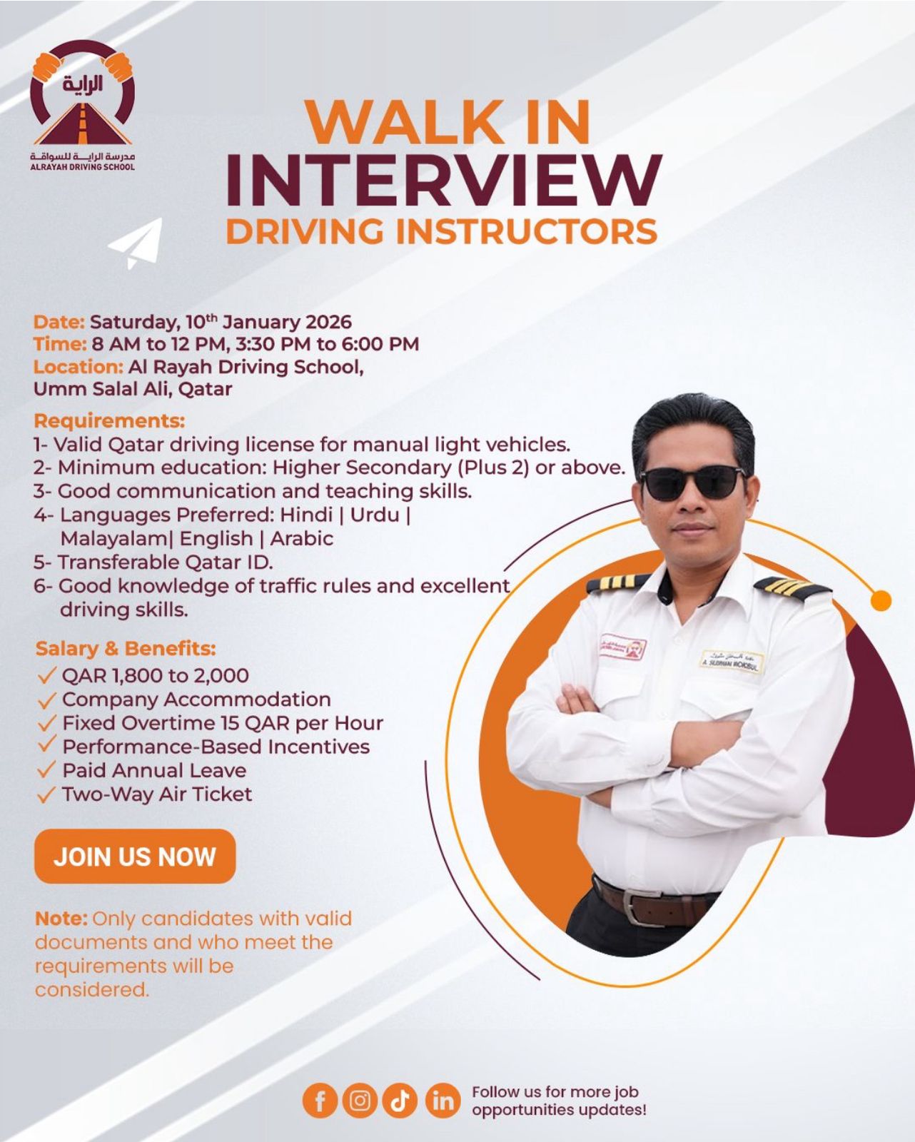 Al Rayah Driving School Walk in Interview represents a valuable opportunity for job seekers in Qatar who are eager to pursue a sales career in a reputable organization. With competitive pay, added benefits, and a chance to be part of a growing team, Al Rayah Driving School provides an excellent platform for driven professionals to showcase their potential.