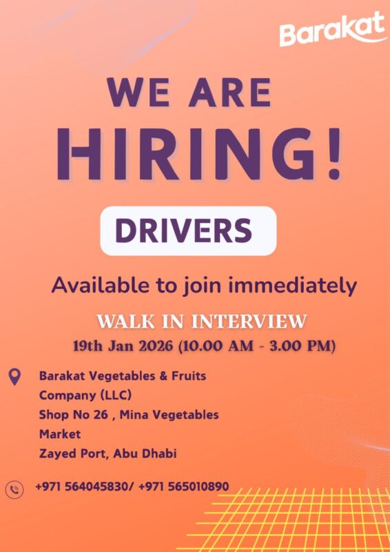 Barakat Walk in Interview continues to be a trusted brand in the UAE for fresh food solutions, offering quality service and a rewarding work culture. Interested candidates should not miss these walk-in interview opportunities in Abu Dhabi. Be sure to arrive early and bring necessary documents to boost your chances of selection.
