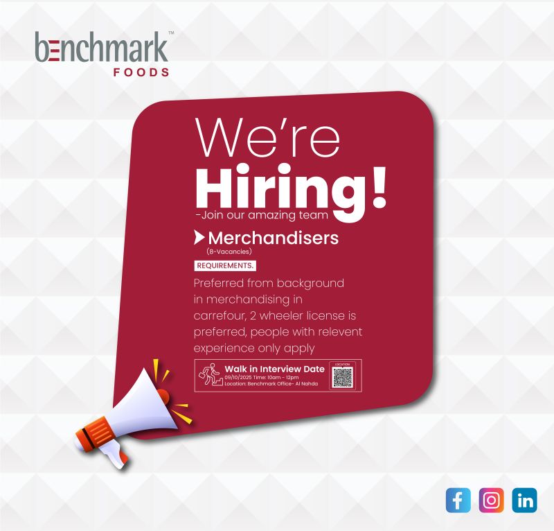 Benchmark Foods is recognized for its strong market presence in the UAE, dealing with high-quality food products and distribution networks. Joining the company means working in a professional environment that values growth, teamwork, and customer satisfaction. With positions ranging from entry-level roles to managerial opportunities, the walk-in interview offers a career pathway for candidates of different skill levels.