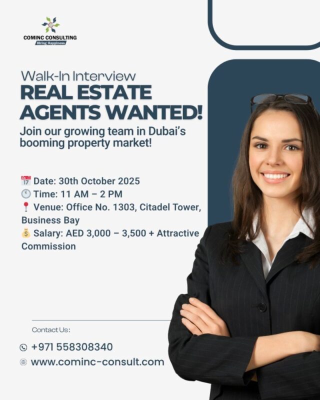 Cominc Consulting, a well-established consulting firm in Dubai, has announced Cominc Consulting Walk in Interview in Dubai for multiple job vacancies. This recruitment drive presents a great opportunity for experienced professionals seeking a career in sales, real estate, and customer service ๐ข.