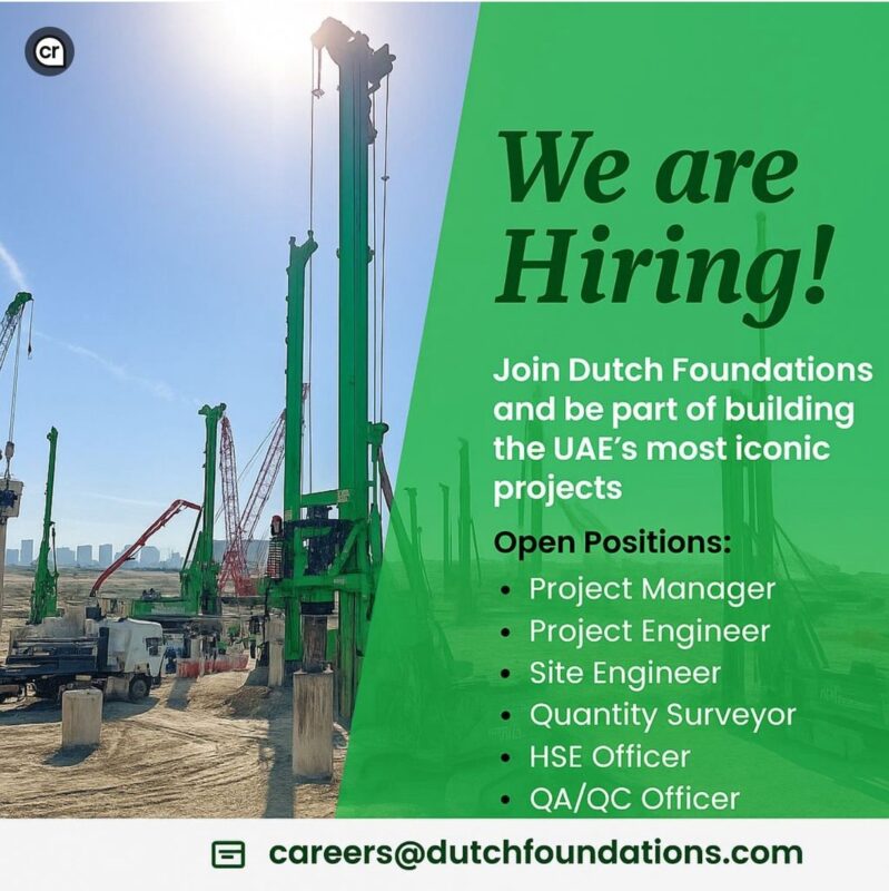 A well-established name in the construction and infrastructure sector, has announced new Dutch Foundations Recruitment in the UAE as part of its expanding project portfolio. Known for contributing to some of the region’s most iconic structures, the company continues to strengthen its workforce, seeking experienced and dedicated professionals who can support its vision of excellence. As the UAE’s development landscape grows, Dutch Foundations remains at the forefront, offering promising career paths for engineering and construction specialists 📢.