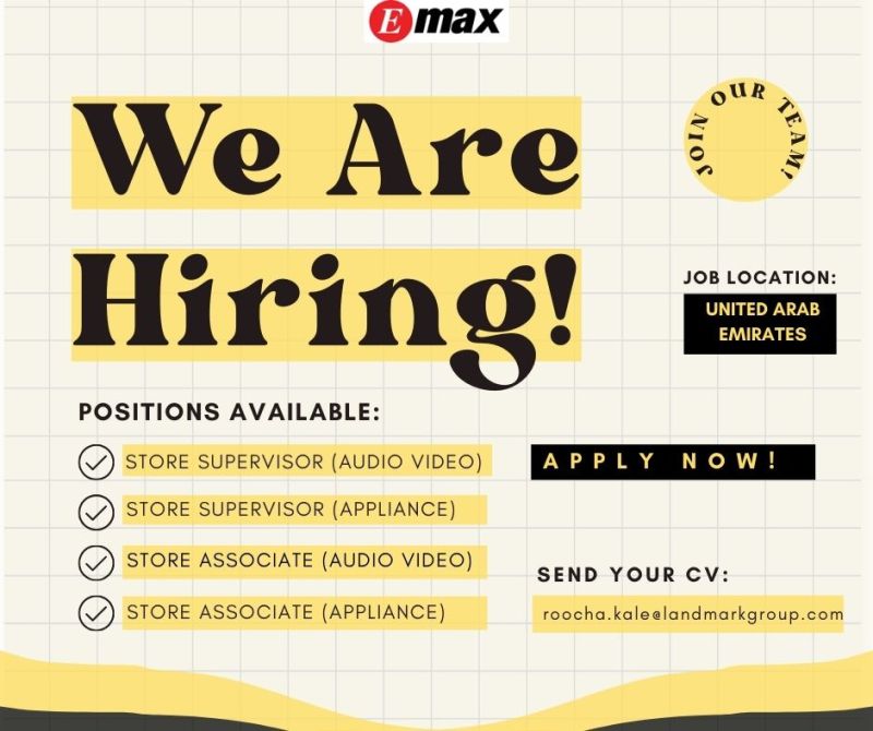 Emax, one of the UAEโs leading electronics and consumer appliance retailers and a part of the Landmark Group, has announced Emax Recruitment in the UAE. The hiring initiative aims to strengthen its in-store teams by bringing on board experienced and customer-focused retail professionals. This opportunity is ideal for candidates seeking to build or advance a career in the retail electronics and appliances sector within the UAE ๐ข.