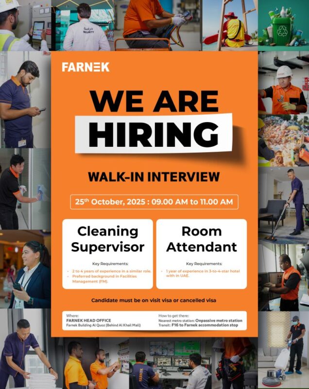 Farnek has built a reputation for being a trusted name in facilities management and security services across the UAE. By joining, candidates will have the chance to work in a professional environment that values growth, teamwork, and customer service.
