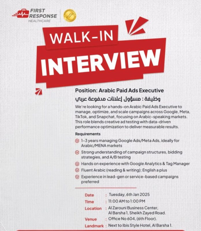 First Response Healthcare is seeking a hands-on Arabic Paid Ads Executive to manage, optimize, and scale paid advertising campaigns across Google, Meta, TikTok, and Snapchat, with a strong focus on Arabic-speaking markets.