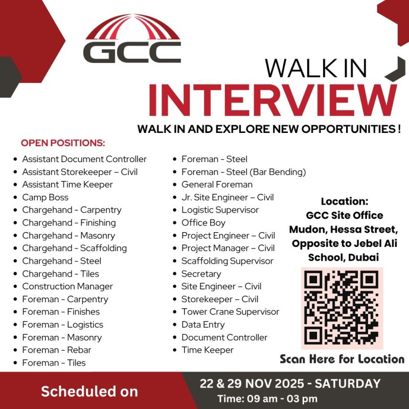 With the tagline βWalk in and explore new opportunities!β, GCCβs recruitment event is expected to attract a large number of professionals from the construction and engineering fields. The wide range of vacancies ensures suitability for both entry-level candidates and experienced personnel. The initiative reflects the companyβs commitment to expanding its workforce and offering employment avenues within the UAEβs growing construction sector.