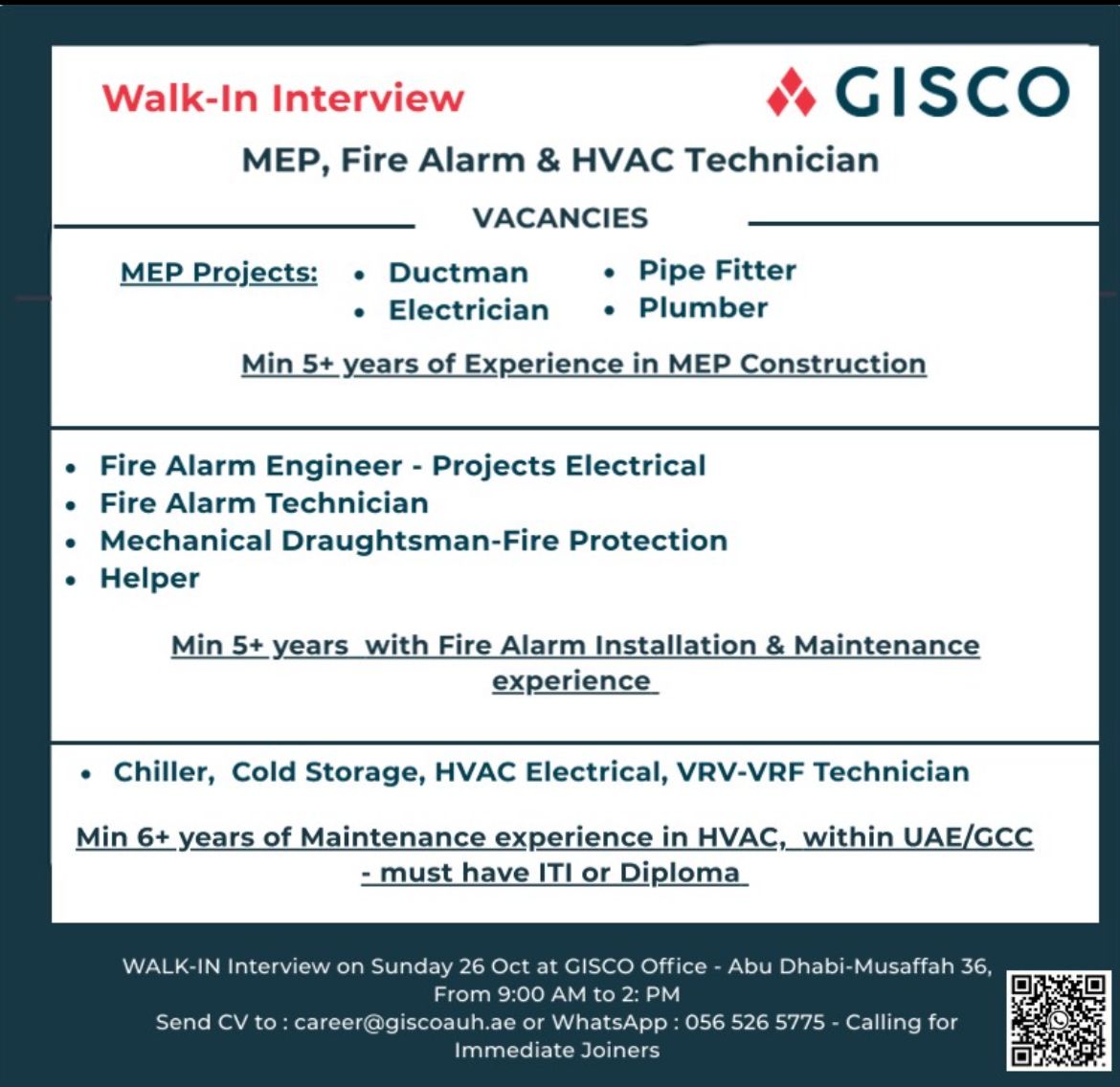 To apply for these positions, candidates are requested to bring their updated CV to the GISCO Walk in Interview in Abu Dhabi. Additionally, applicants can send their CVs to [email protected] or contact via WhatsApp at 056 526 5775. It is important to mention the specific position being applied for in the subject line of the email or message.