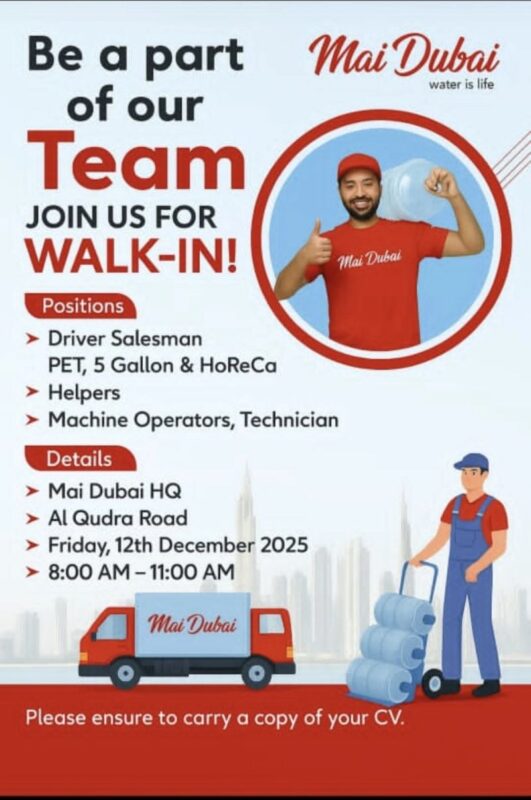 Mai Dubai has consistently positioned itself as a major player in the region’s beverage and bottled water industry. As the company grows, so does its need for skilled, reliable, and hardworking team members. This walk-in interview event serves as a valuable chance for job seekers to be part of an organization that values professionalism, innovation, and operational excellence.