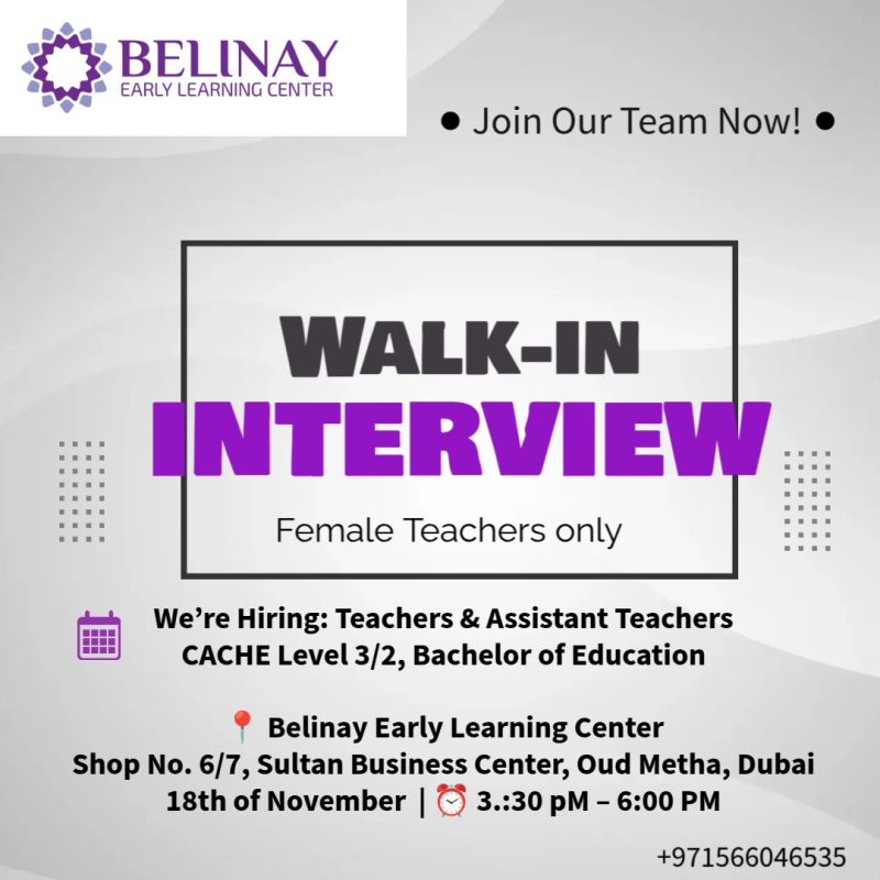 Belinay Early Learning Center Walk in Interviews in Dubai
