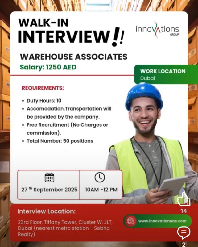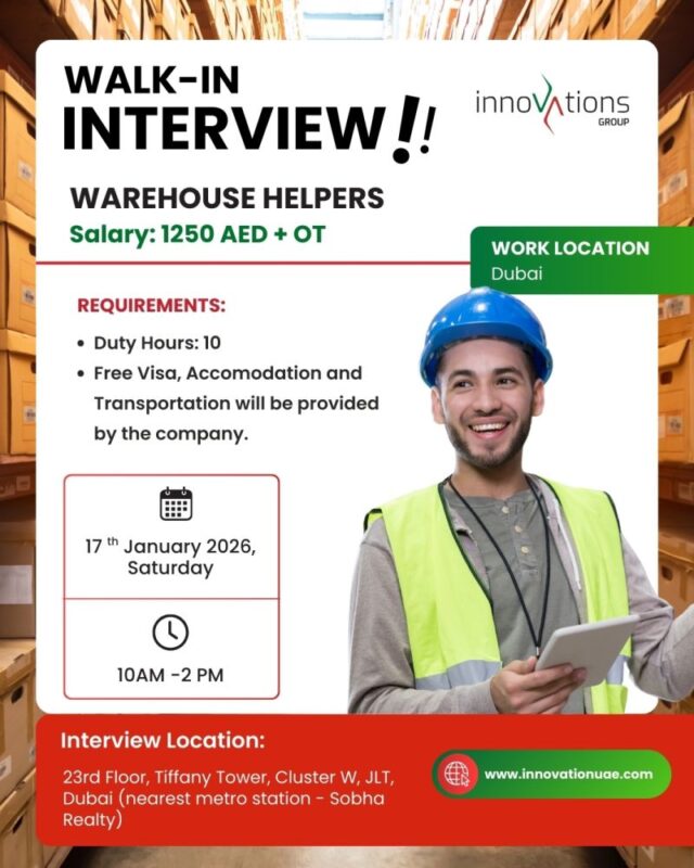 This hiring initiative reflects Innovations’ ongoing commitment to providing fair and transparent employment opportunities in Dubai’s competitive job market. The fact that recruitment is free of cost makes this drive particularly appealing to job seekers, especially those who may be cautious of hidden charges or third-party commissions.