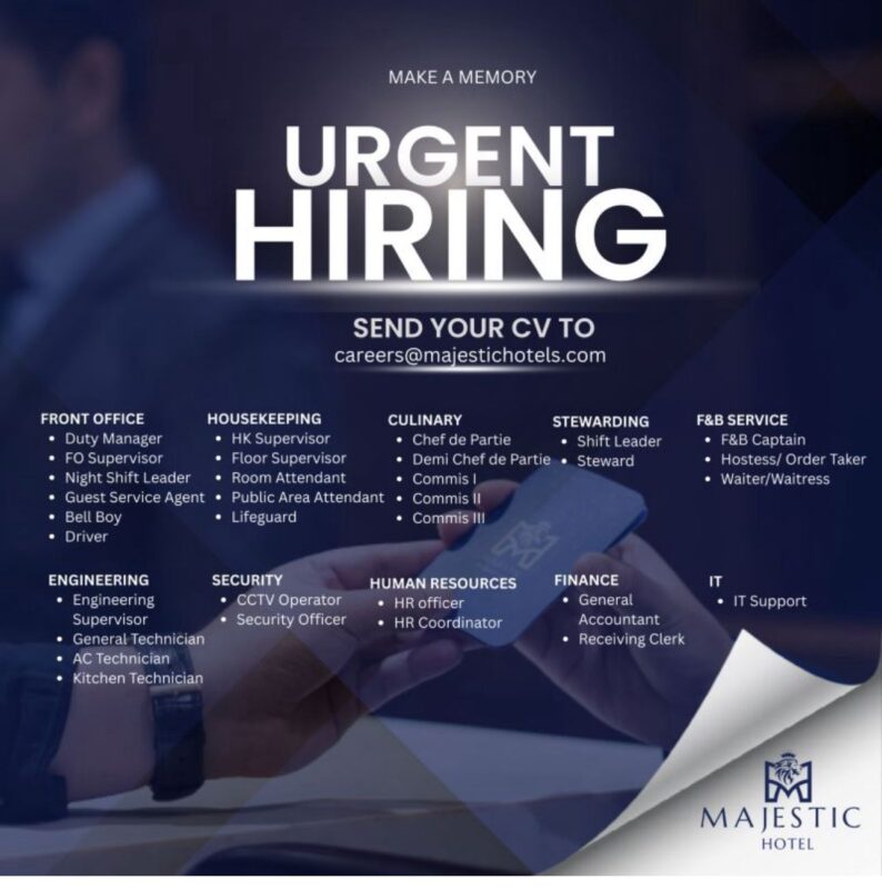 ๐ช Details of Majestic Hotel Recruitments: