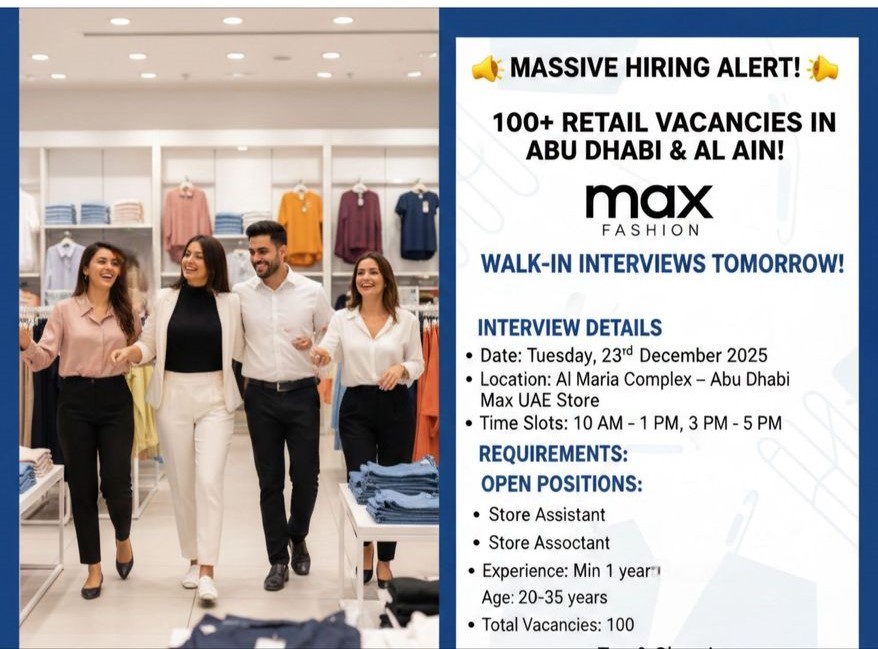 Candidates are encouraged to carry updated CVs, dress professionally, and be prepared for on-the-spot Max Fashion Walk in Interview in Abu Dhabi. Those who know friends or colleagues seeking retail jobs are urged to share this opportunity, helping it reach more job seekers across the UAE.
