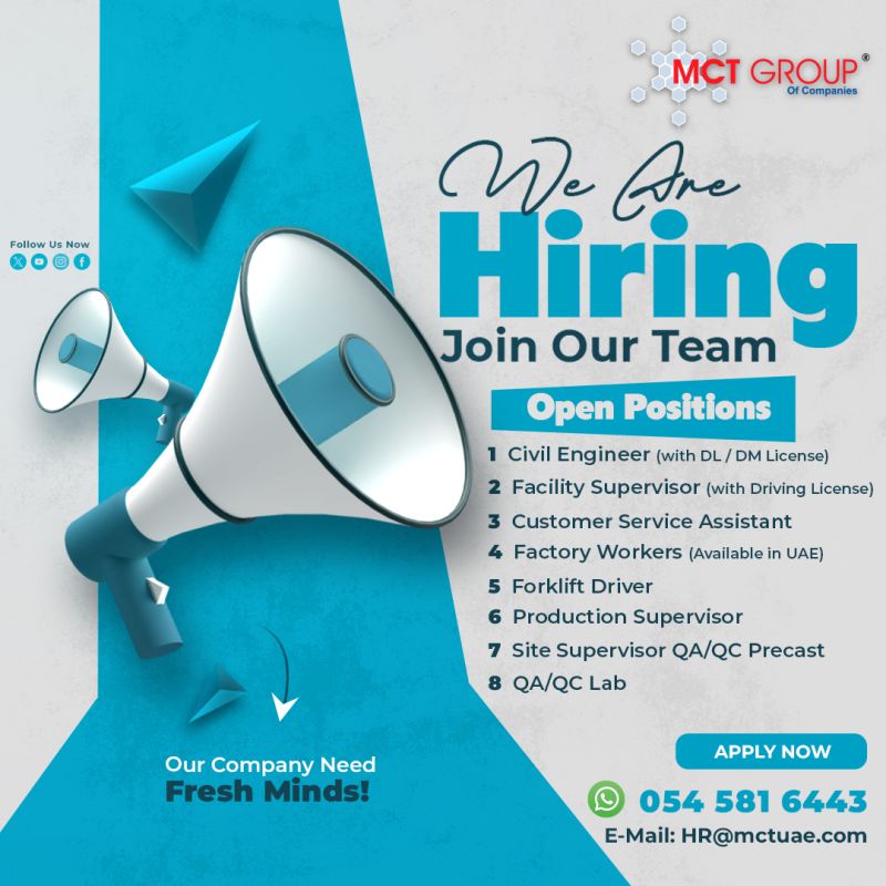 MCT Group is renowned for its commitment to professional growth, innovation, and employee development. By joining the company, candidates gain the opportunity to work in a supportive environment with exposure to challenging projects and skill-building experiences. The recruitment drive represents a gateway for both fresh graduates and experienced professionals to become part of a forward-thinking organization in the UAE.