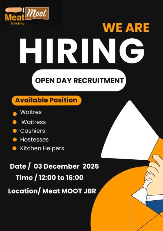 Meat Moot UAE Open Day Recruitment in Dubai is expected to draw a wide range of applicants due to Meat Mootβs strong brand presence and reputation. By welcoming new talent, the company aims to enhance its service standards and further solidify its position among top dining spots in the region.