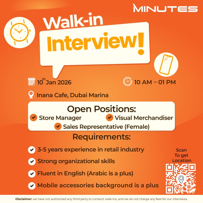 Minutes Walk in Interview in Dubai offers a platform for skilled professionals to showcase their talents and become part of a leading service brand in the UAE. Interested individuals are advised to attend the interview well-prepared and dressed professionally to make a strong impression.