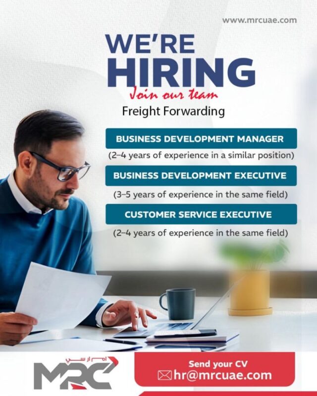 MRC Shipping Recruitment invites motivated professionals to be part of its expanding team and contribute to its mission of delivering seamless, world-class freight forwarding services in Dubai and beyond. Interested candidates can send their CVs to [email protected].