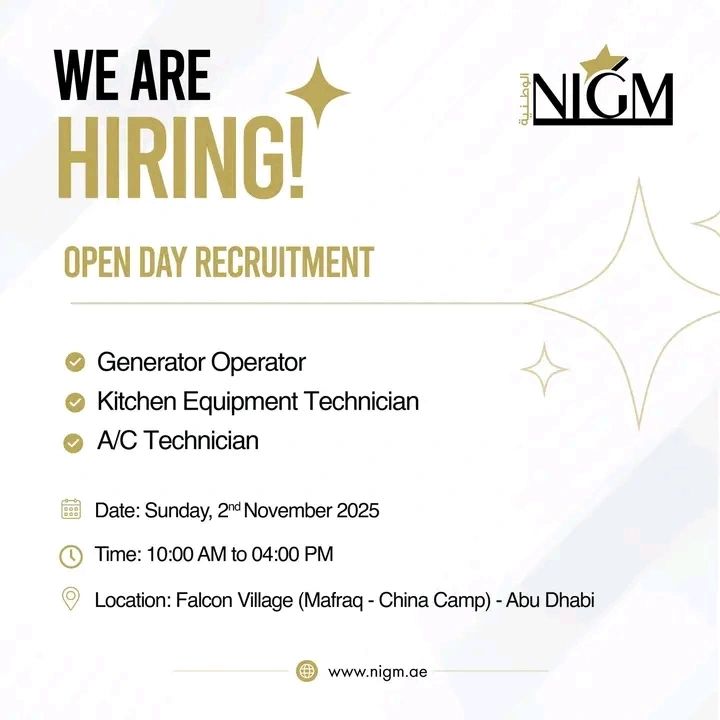 Joining NIGM Open Day Recruitment in Abu Dhabi means becoming part of a dedicated team focused on delivering excellence across every project. If you meet the qualifications and are ready to take the next step in your career, don’t miss the opportunity to join NIGM. Attend the Open Day Recruitment on the Sunday, 2nd November 2025, and bring your relevant documents to secure your spot in this well-established company.