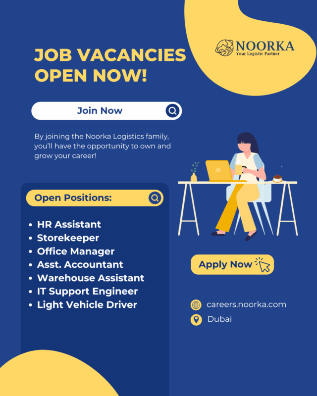 Noorka continues to expand its footprint in Dubai, driven by rising demand for efficient, reliable logistics solutions. The company attributes its success not only to innovative practices but also to its strong workforce. Today, it opens its doors once again to motivated individuals seeking a stable and progressive career path.