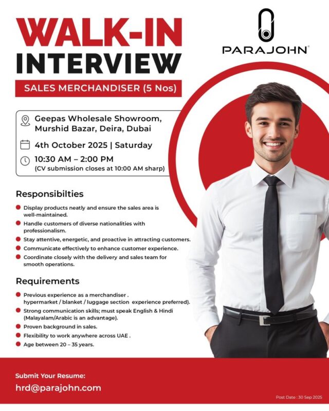 ParaJohn, a well-known name in the retail and wholesale industry, is offering an exciting opportunity for individuals seeking to build a career in sales and merchandising. The company has announced ParaJohn Walk in Interview in Dubai, welcoming candidates with strong communication skills and relevant retail experience π’.