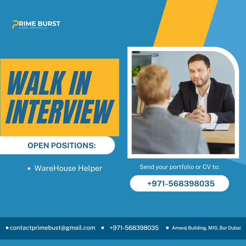 Prime Burst Global Services, a rapidly expanding organization known for its excellence in logistics and warehouse management, has announced a Prime Burst Walk in Interview in Dubai. The event is scheduled for Monday, 27th October 2025, from 11:00 AM to 4:00 PM 📢.