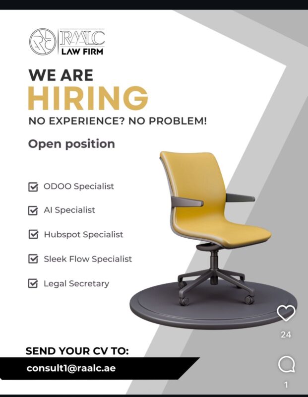 RAALC Law Firm Recruitments has announced exciting new recruitment opportunities in Dubai. The firm is inviting applications from talented individuals across multiple domains, creating a gateway for professionals who aspire to build their careers in law, technology, and management 📢.