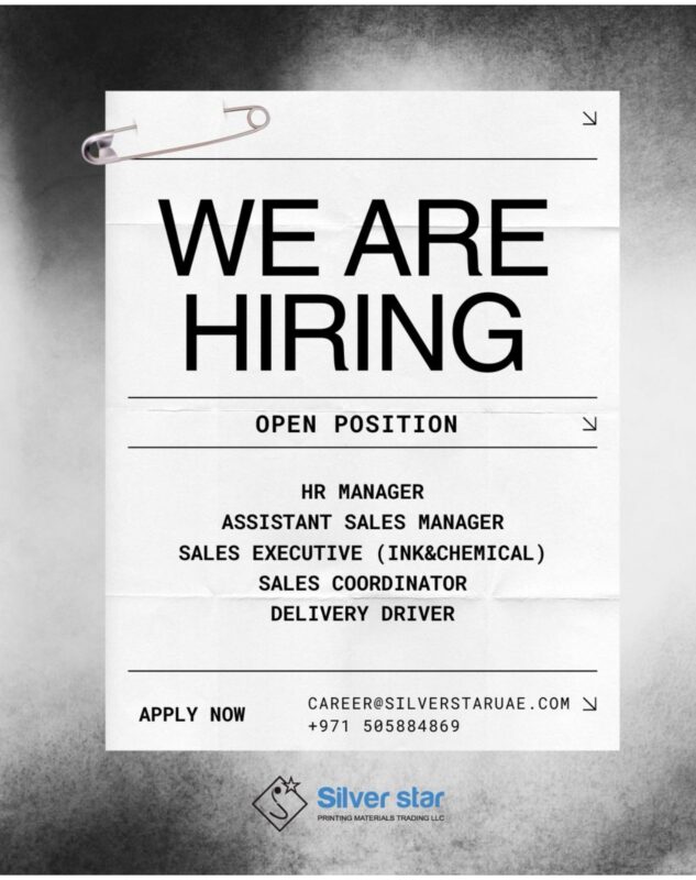 Silver Star Printing Materials Trading LLCβs recruitment drive presents an excellent opportunity for professionals seeking stability, innovation, and growth in the UAEβs printing and materials trading sector. With its supportive environment and continuous expansion, the company remains a preferred employer for skilled individuals looking to advance their careers.