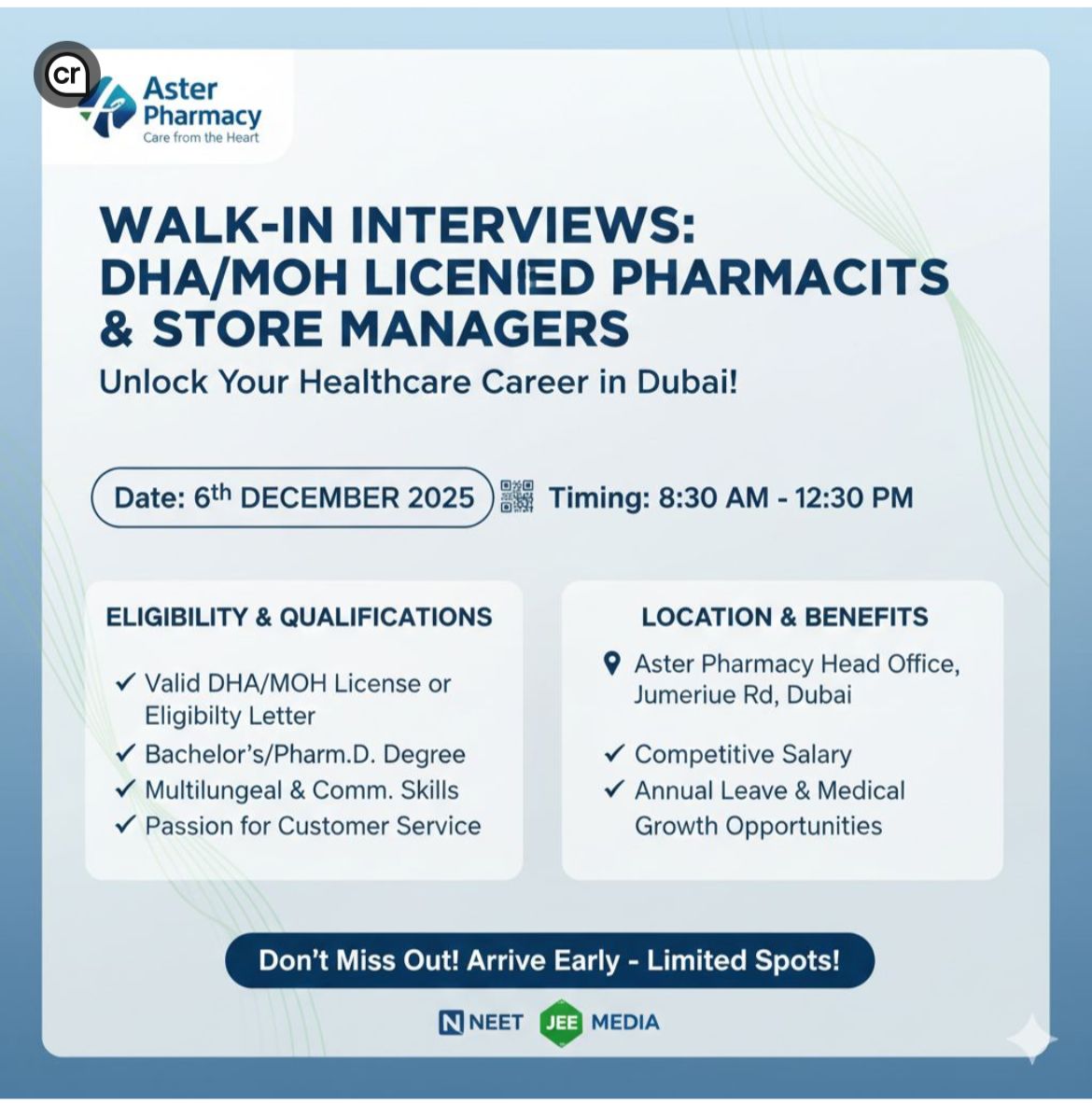 π How to Apply for Aster Pharmacy walk in interview in Dubai: