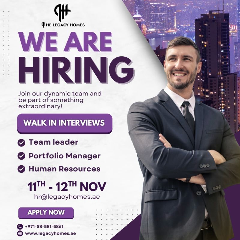 A prominent name in Dubai’s real estate sector, is conducting The Legacy Homes Walk in Interview for multiple positions at their Dubai office. This recruitment drive presents an excellent opportunity for candidates with experience in the real estate industry to join a dynamic and growing team 📢.