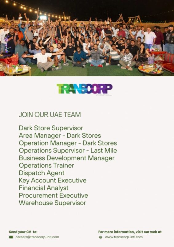 Transcorp Internationalβs UAE division is actively hiring for multiple positions across various departments: