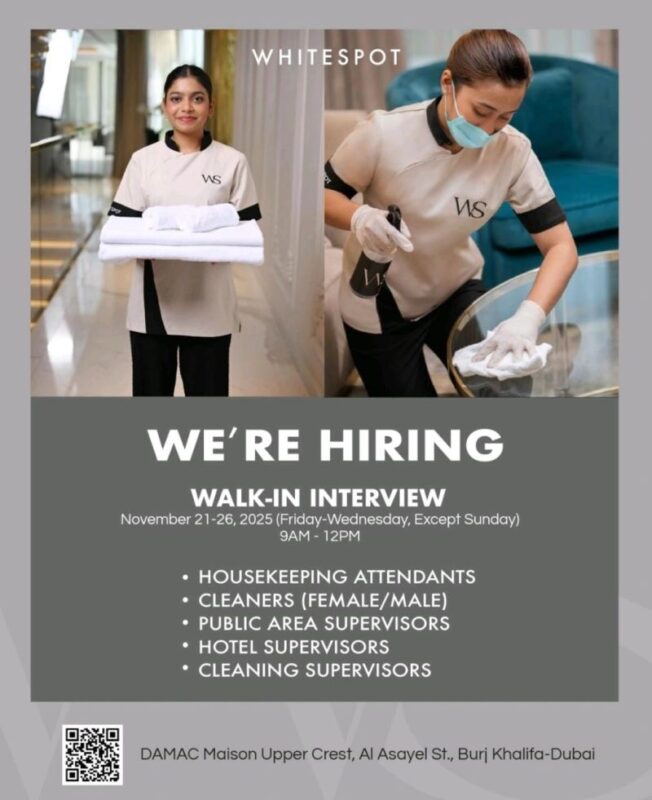 Interested candidates are encouraged to attend the Whitespot Walk in Interview in Dubai with their updated CVs and any relevant documents. This is an excellent opportunity for experienced professionals to join a company that values expertise and dedication to excellence.