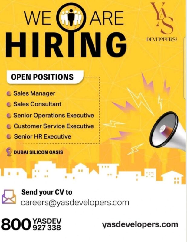 A well-established name in Dubai’s real estate and development sector, has announced YAS Developers Recruitment in Dubai. Known for its commitment to quality, innovation, and customer satisfaction, YAS Developers continues to expand its team to support ongoing and upcoming projects across the UAE. This hiring drive reflects the company’s growth strategy and focus on strengthening its core business functions 📢.